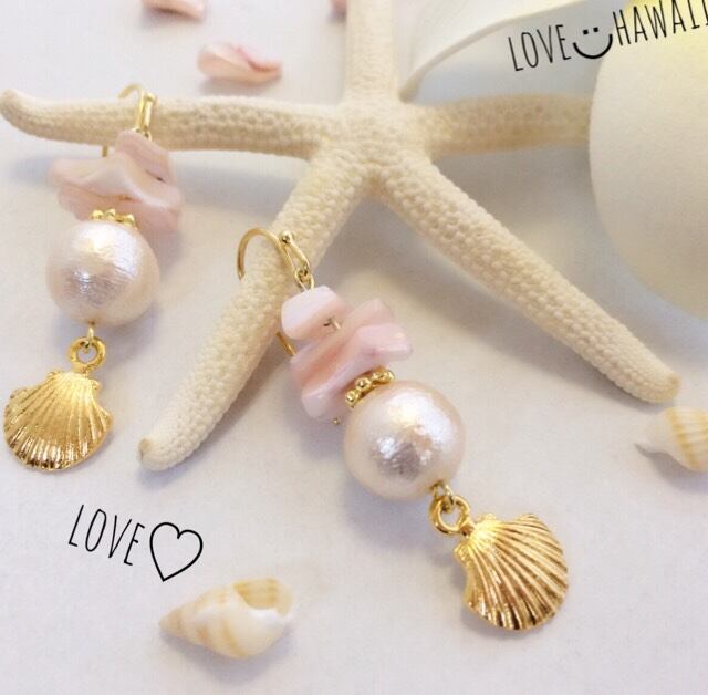 優しいピンクのマザーオブパールと、淡いピンクのコットンパールが、恋する女性にお勧めです♡
